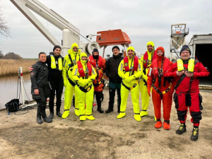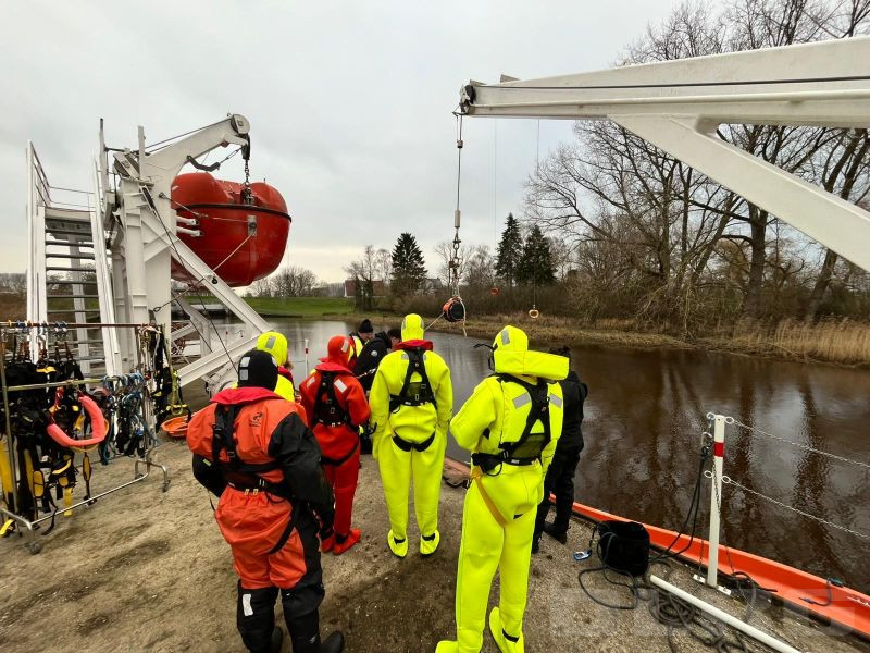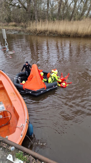 Dort durfte ausprobiert werden, wie das Sea Survival Training im Freiwasser der Hunte funktioniert.
